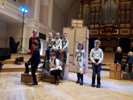 Studenci stworzyli układy rytmiczne do muzyki z różnych epok. Zaczęli … od Bacha. Potem tańczyli do muzyki Mozarta, Haydna, Beethovena, Sibeliusa, Grażyny Bacewicz oraz Jarosława Kordaczuka i jego „Canzony egzaltowanych prądnic i silników”. Zaczarowali nas! Niektóre dzieci zdobyły się na odwagę i spróbowały swoich sił na scenie. „Taniec i w ogóle ruch połączony z muzyką jest bardzo pożyteczny tak dla ciała, jak i dla ducha. Dzięki dużej koncentracji na jak najlepszej ruchowej ilustracji muzyki rozwija się uwagę, inteligencję, wrażliwość i sprawność fizyczną.” (z listka koncertowego). Oj, tak!!!